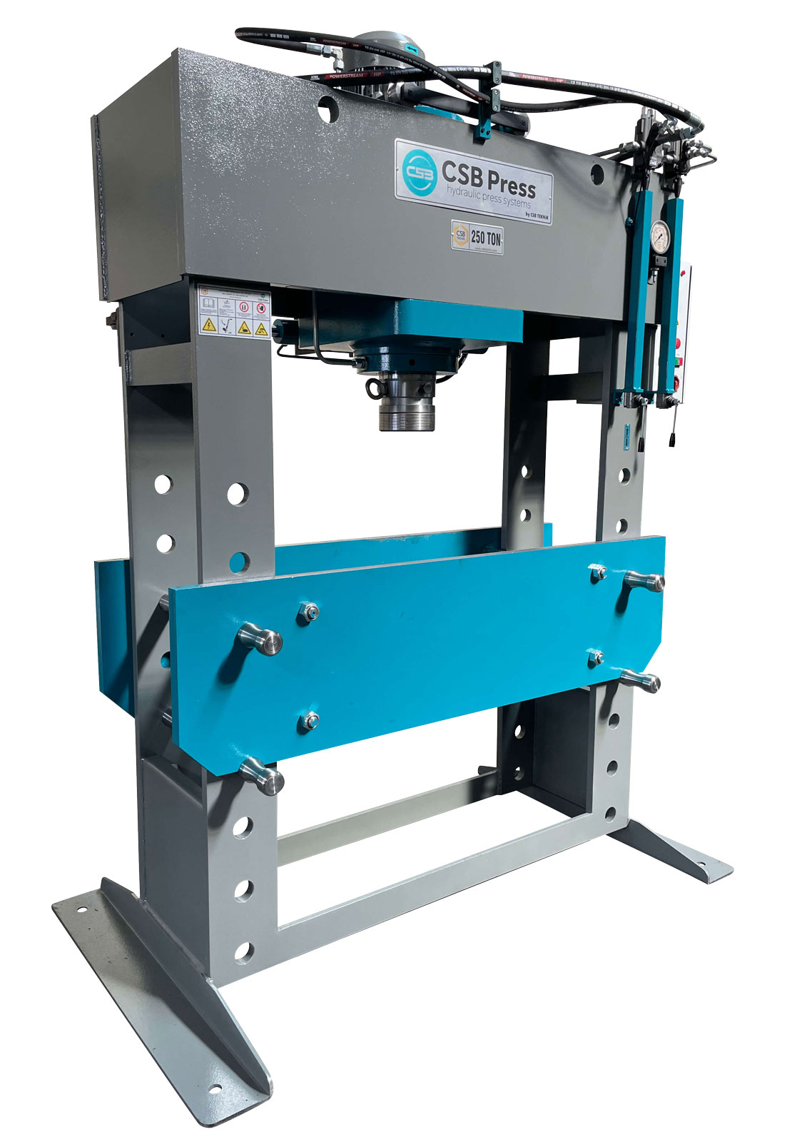 The CSB Workshop-Type Press is highly efficient for straightening wide and long bars, plates, and pipes. Customizable in desired sizes and tonnages, this press is ideal for tasks requiring practical power in the workshop, including bearing removal and installation. With its robust construction, it delivers reliable performance even under challenging conditions, while its user-friendly design enhances workshop productivity and efficiency.